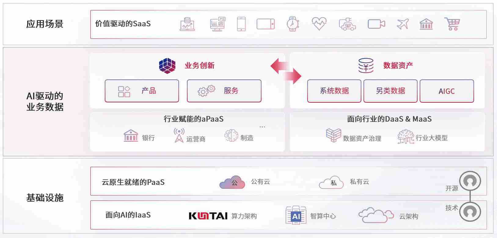 数字时代,,围绕企业数字化转型的关键要素,,z6尊龙数码开创性的提出数云融合战略和技术体系框架,,着力在云原生、、、数字原生、、、、AI原生和信创产业上架构产品和服务能力,,,,为处在不同数字化转型阶段的快消零售、、汽车、、金融、、医疗、、、政企、、、、教育、、运营商等行业客户提供泛在的敏捷IT能力和融合的数据驱动能力,,,构建跨界融合创新的数字业务场景和新业务模式,,助力企业级客户建立面向未来的核心能力和竞争优势,,全面推动社会的数字化、、、智能化转型升级。。